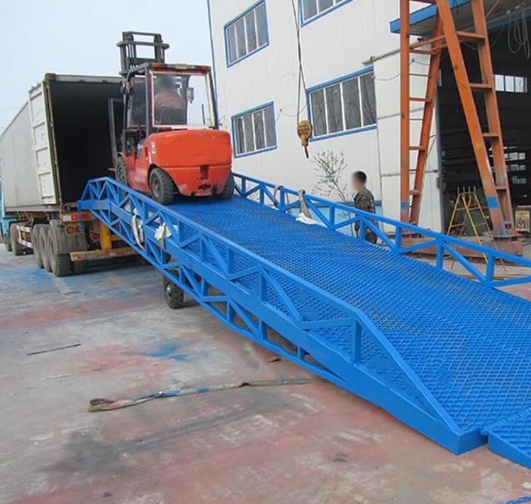 威海登車橋-威海移動登車橋-集裝箱裝卸貨平臺-液壓裝車橋。移動登車橋采用人工液壓動力,不需外接動力電源,只需單人操作,就可以實現(xiàn)貨物的安全快速裝卸,節(jié)省時間和人力資源。它可使企業(yè)減少大量勞動力,成倍提高裝卸作業(yè)效率,加快貨物流通速度,獲取更大經(jīng)濟(jì)效益。移動登車橋被廣泛應(yīng)用于無裝卸設(shè)備的貨臺及流動裝卸場所,是與叉車配合使用的貨物裝卸輔助設(shè)備。并可以根據(jù)不同的車型及裝車過程車廂的高度變化進(jìn)行調(diào)節(jié)。廣泛應(yīng)用于工廠運輸備料、物流集散中心運輸貨物、港口碼頭上下集裝箱,隨著工礦企業(yè)的發(fā)展移動式液壓登車橋越來越被廣泛的應(yīng)用到各行各業(yè)卸貨中。